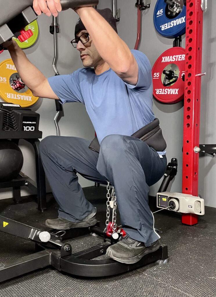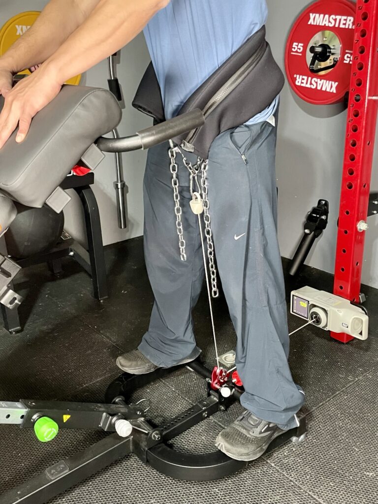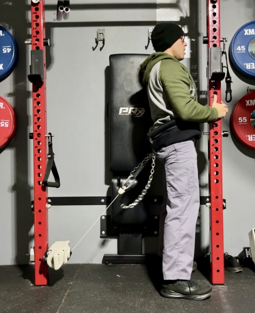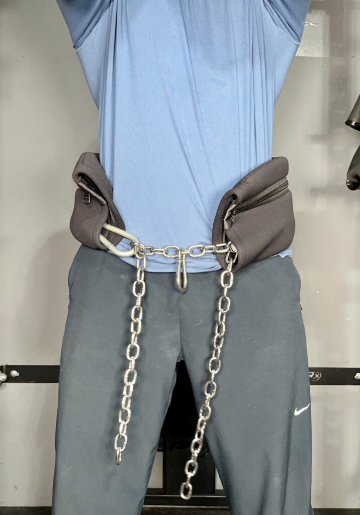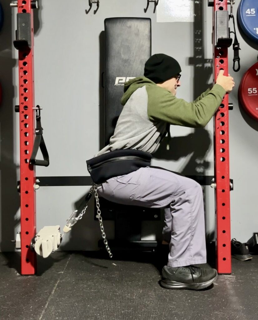 I don’t own a dedicated belt squat machine so I’m testing this with a makeshift belt squat hack.