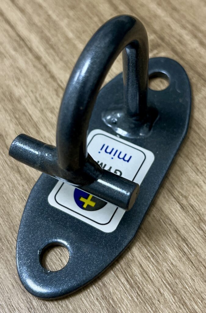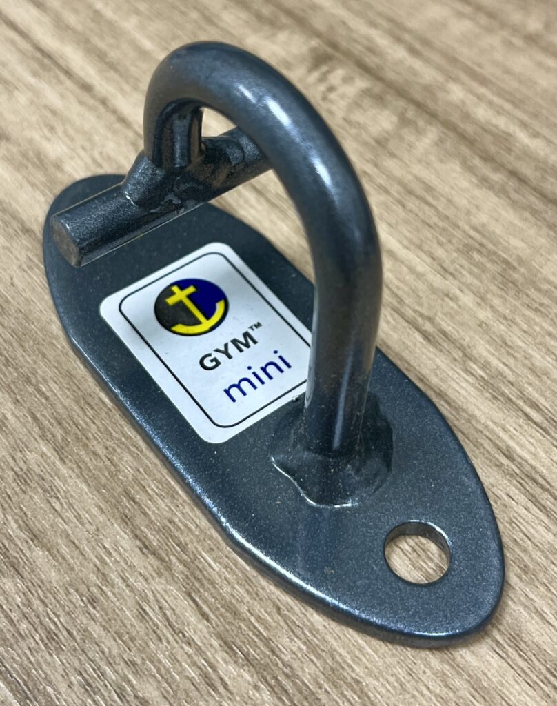 The open ended T-hook has a 3/4″ opening so I can fit any resistance band or suspension straps regardless of thickness.