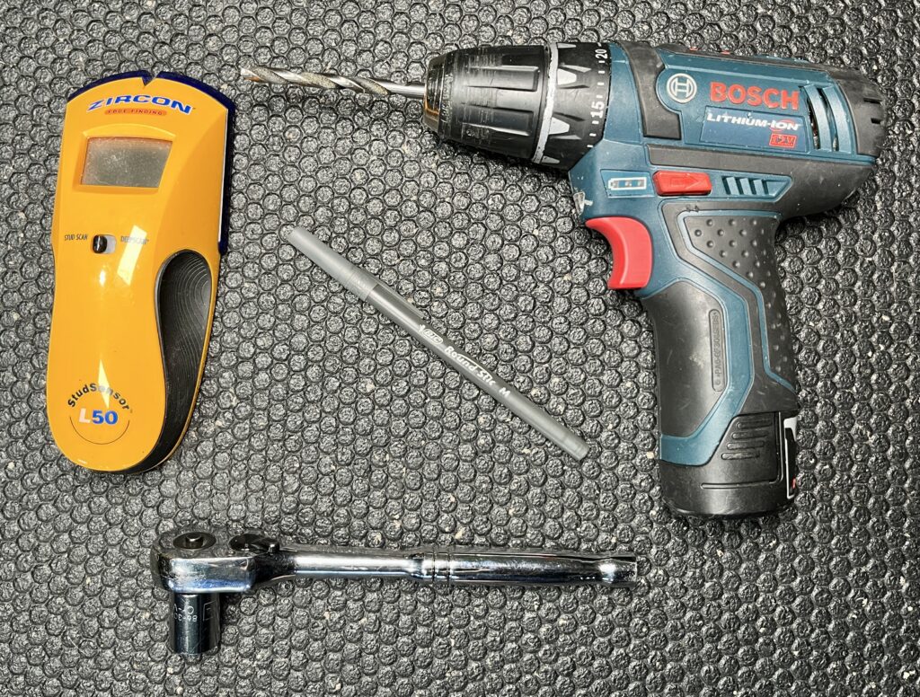 After that, I used a ratcheting socket wrench to tighten bolts down so these hooks aren’t going anywhere.