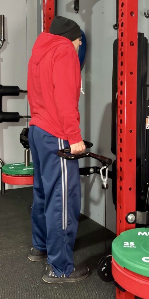 This is just like a short straight bar and has the perfect width so I can keep my elbows pinned to my sides.