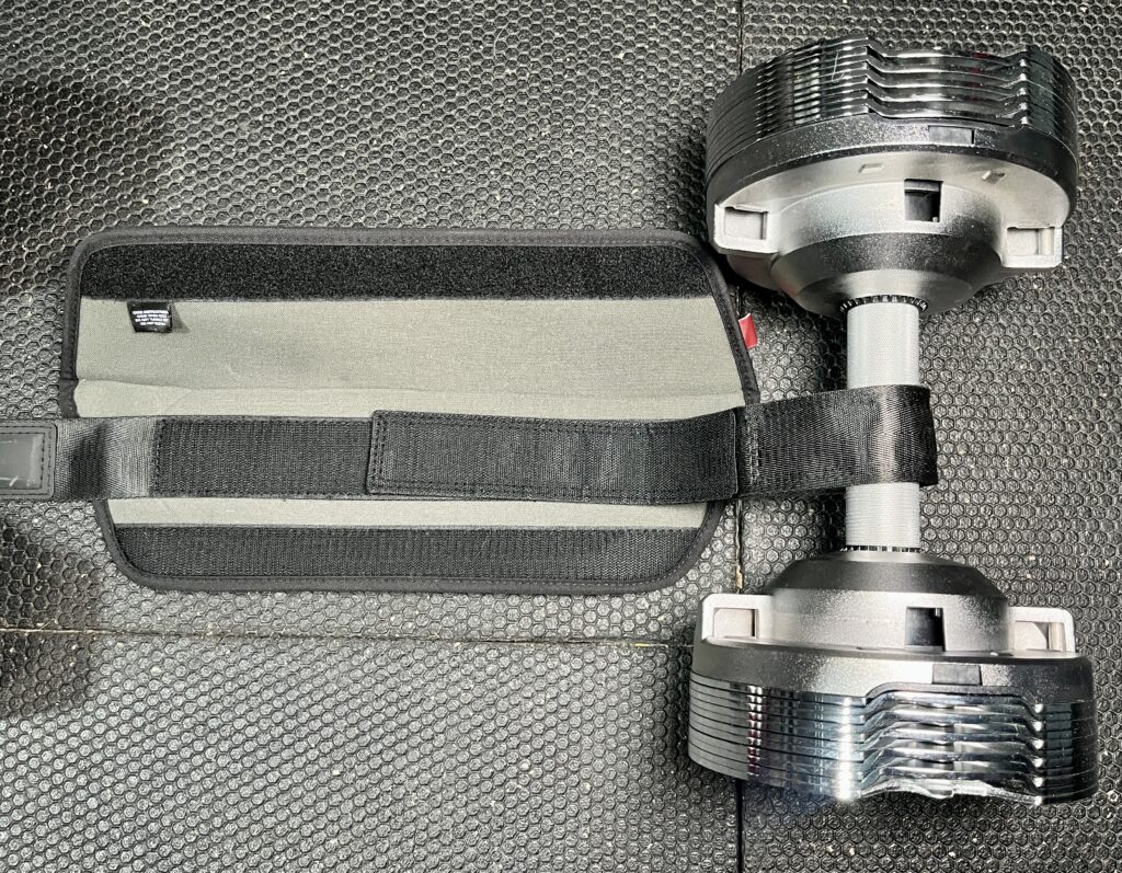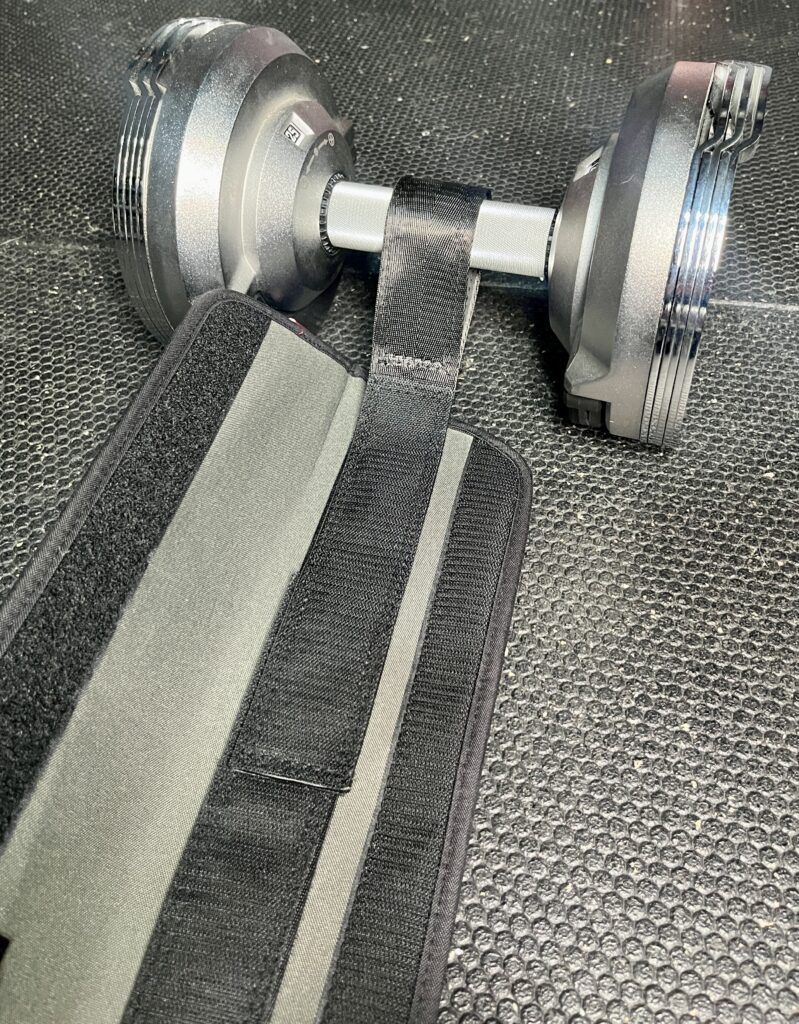 Then I tested my 100 lbs Powerblock dumbbells and the velcro straps didn’t budge so they’re definitely strong.