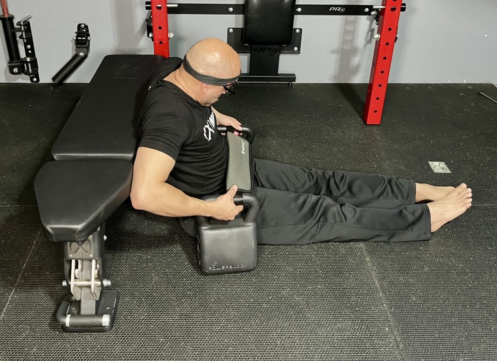 For kettlebells, the setup is the same as with dumbbells.