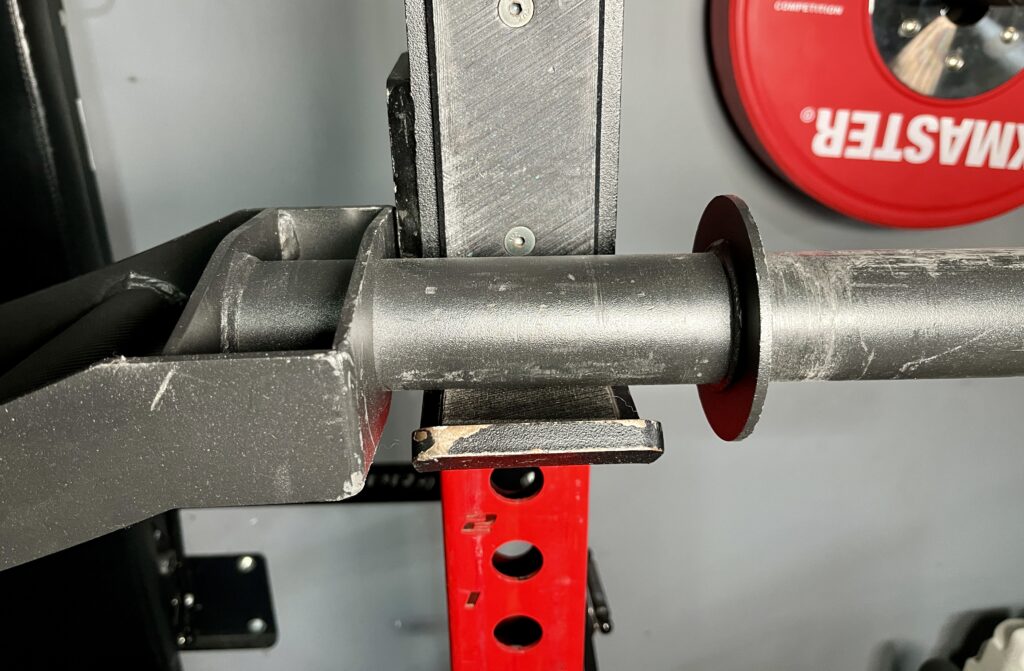 To give you an idea on how the bar fits on my rack, the uprights on my PRx rack are 48″ apart from the outside of one upright to the outside of the other.