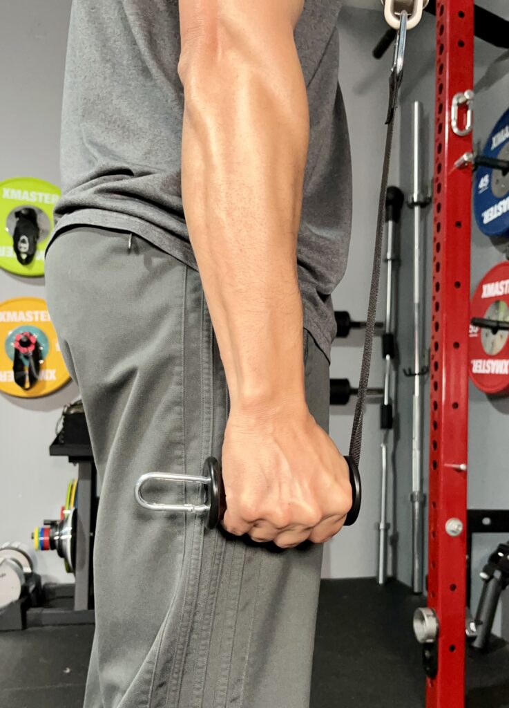 With the handle at the bottom I can use the Pistol Grip handle like a tricep rope.