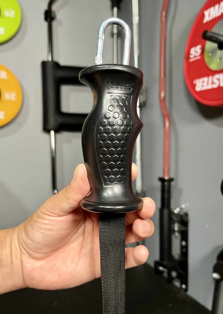 The Bullet Pulley Pistol Grip handle is a 2-in-1 cable attachment that gives me more options than a regular D-handle.