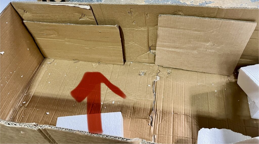 The bottom of the box has the frame and hind leg, and 3 pads on top.