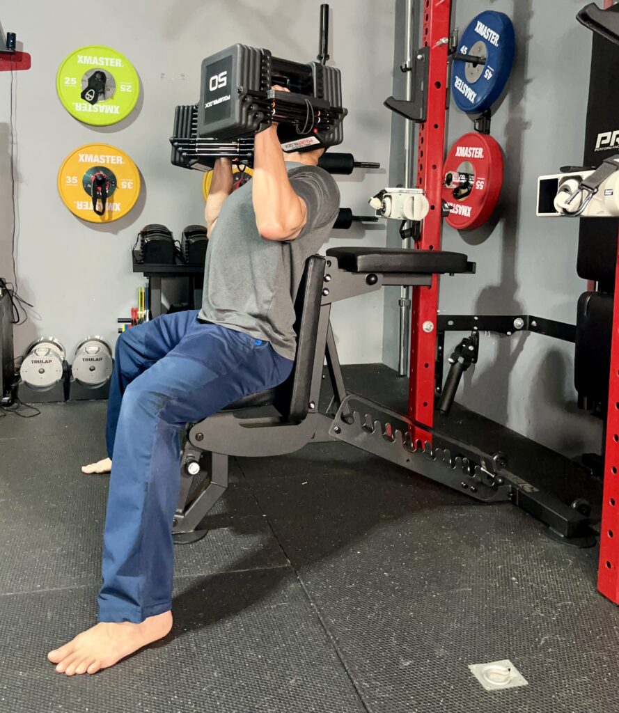 This makes overhead exercises like seated shoulder presses and overhead extensions much more comfortable.