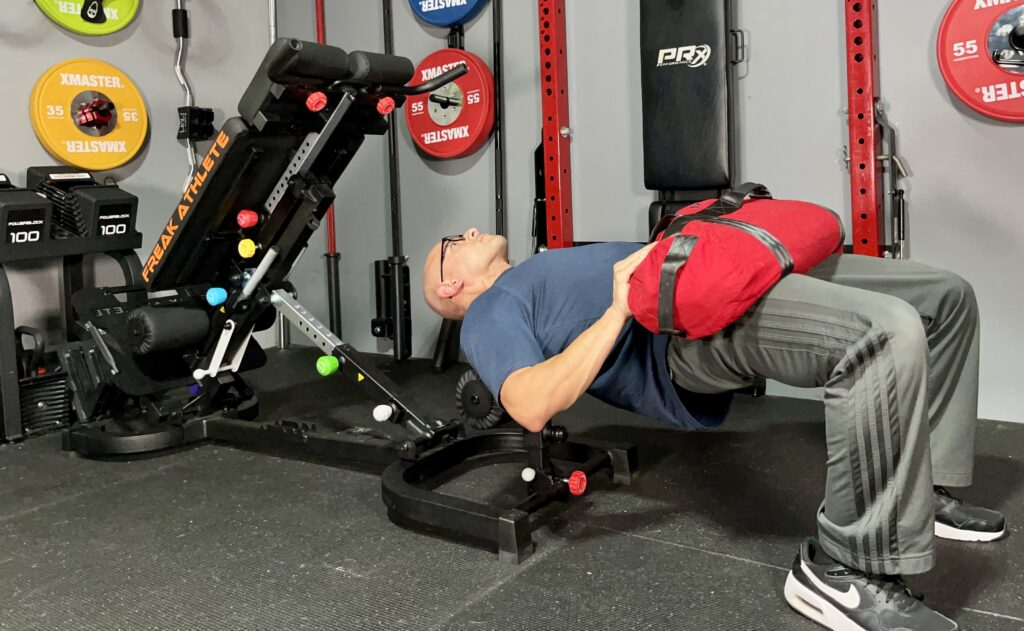 The reverse hypers are not weighted since there’s no way to add a pendulum to the machine, but I can do them with a resistance band or bodyweight.