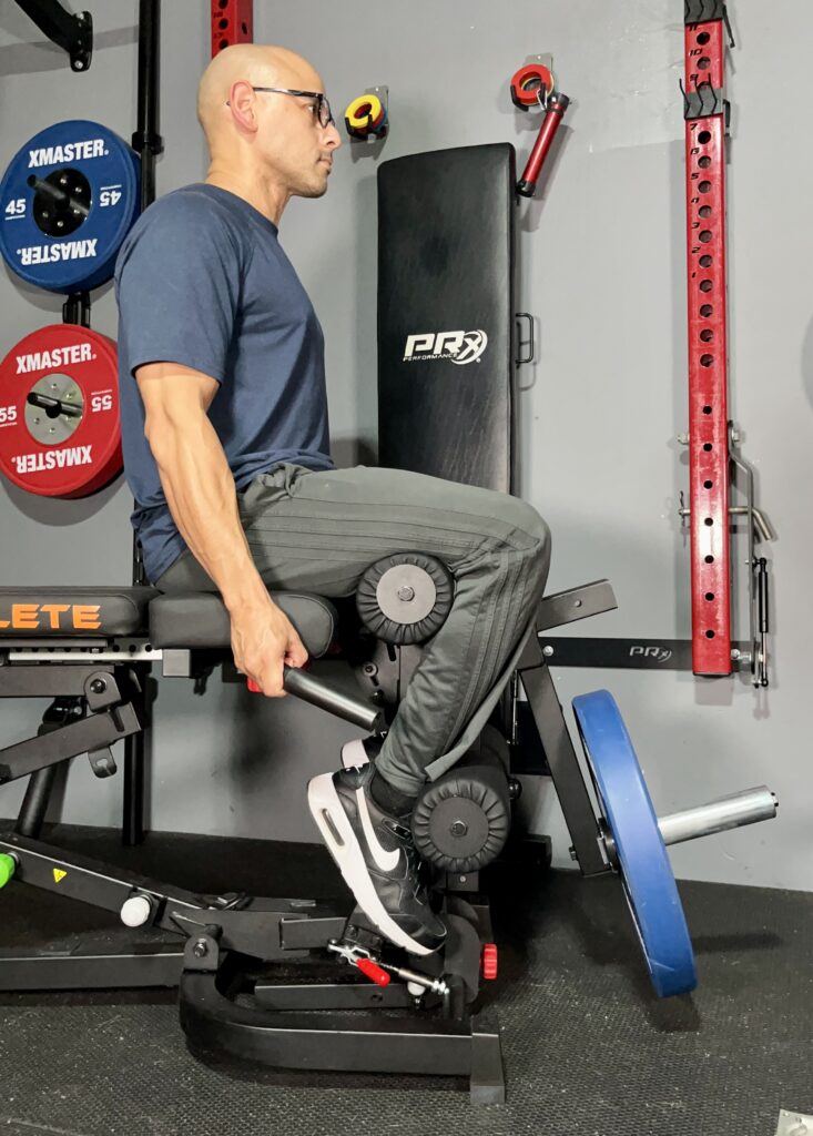 This gives my quads a pre-stretch so I get full range of motion and feel tension right from the beginning of the exercise.