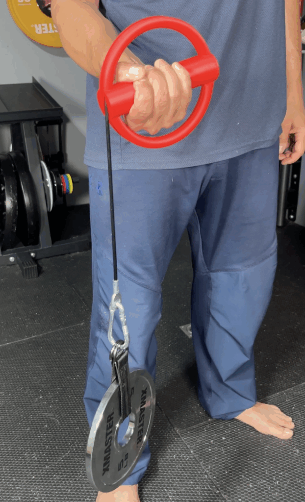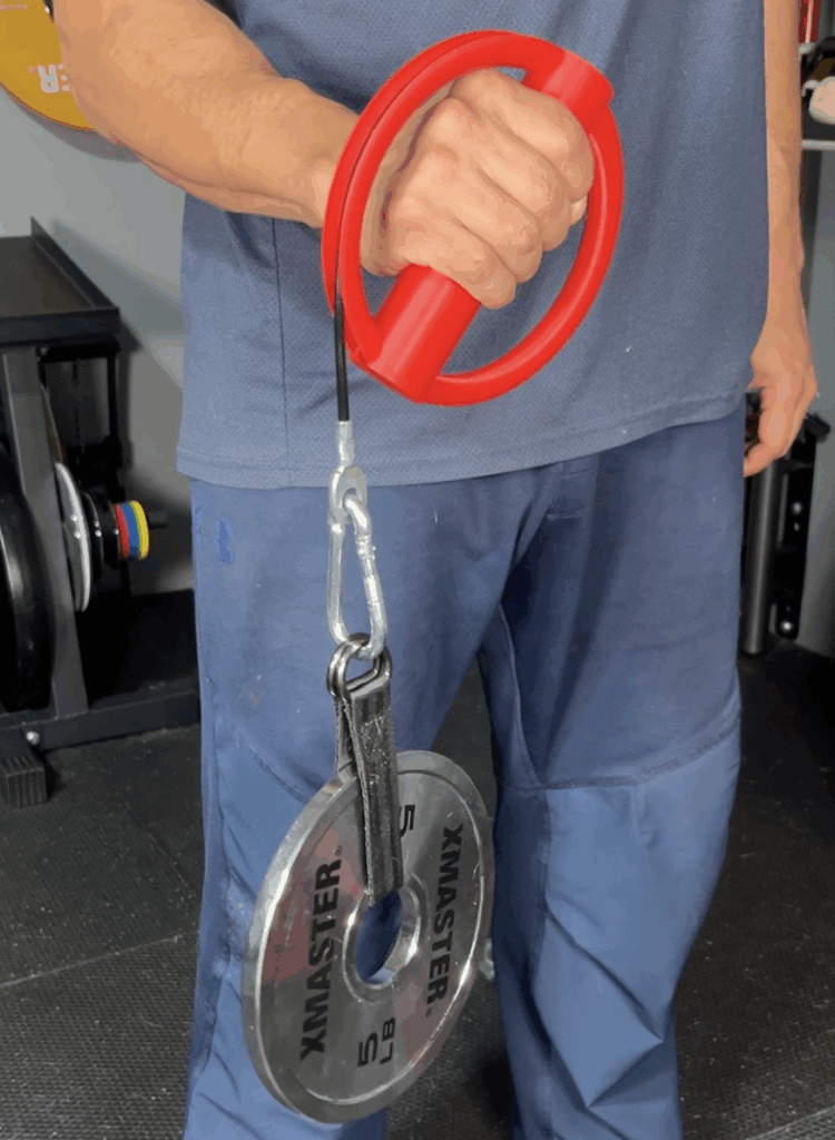 It strengthens my wrists and forearms by providing resistance while I rotate the handles and it’s adjustable so I can make it harder as I get stronger.
