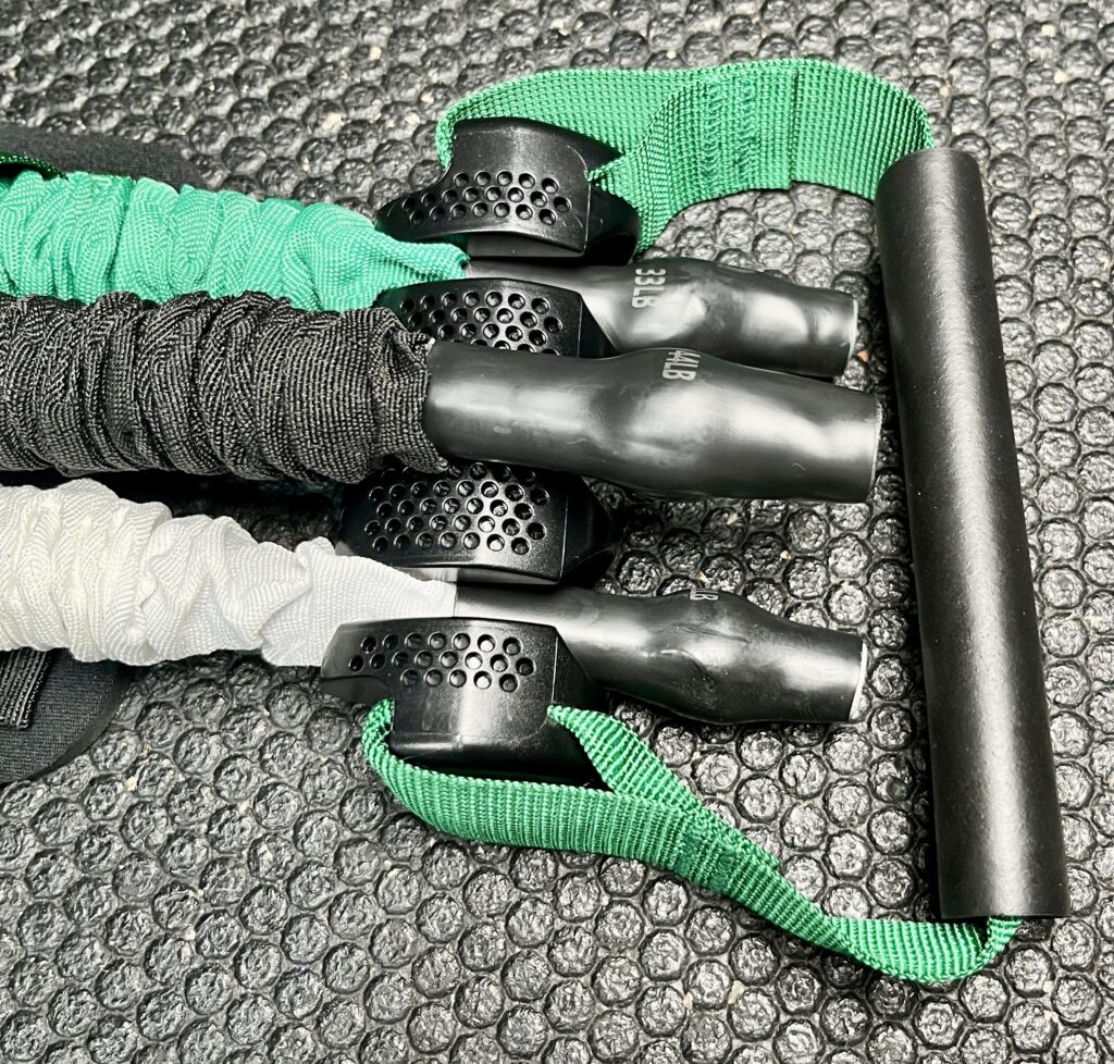 Gymproluxe uses a unique way to stack the handles with multiple bands so I can add resistance.