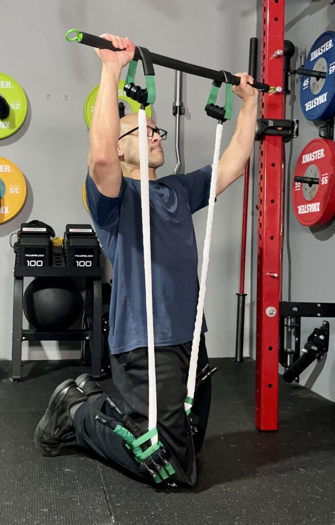 Kneeling shoulder presses feel good at the start since the bands are pre-stretched at the bottom of the exercise.