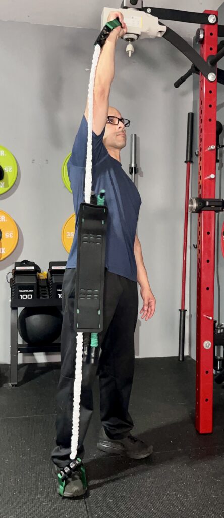 But as I go up, the band reaches its stretching limit and I fall short of full range of motion.