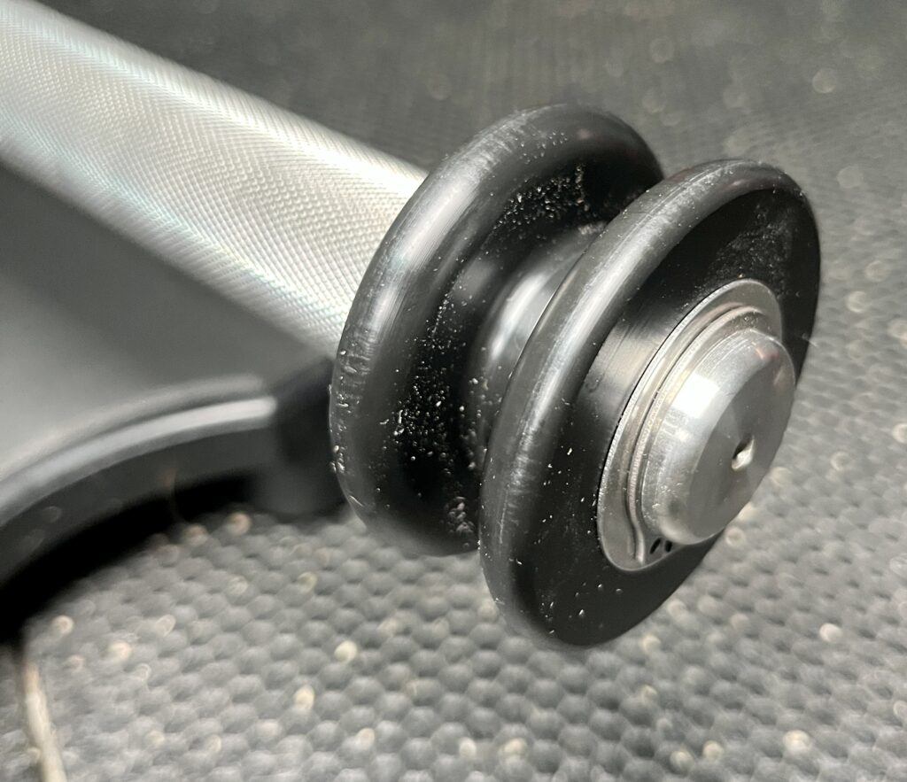 And at the end there’s a set of pulleys that give the bands a natural spin like rotating sleeves on a barbell.