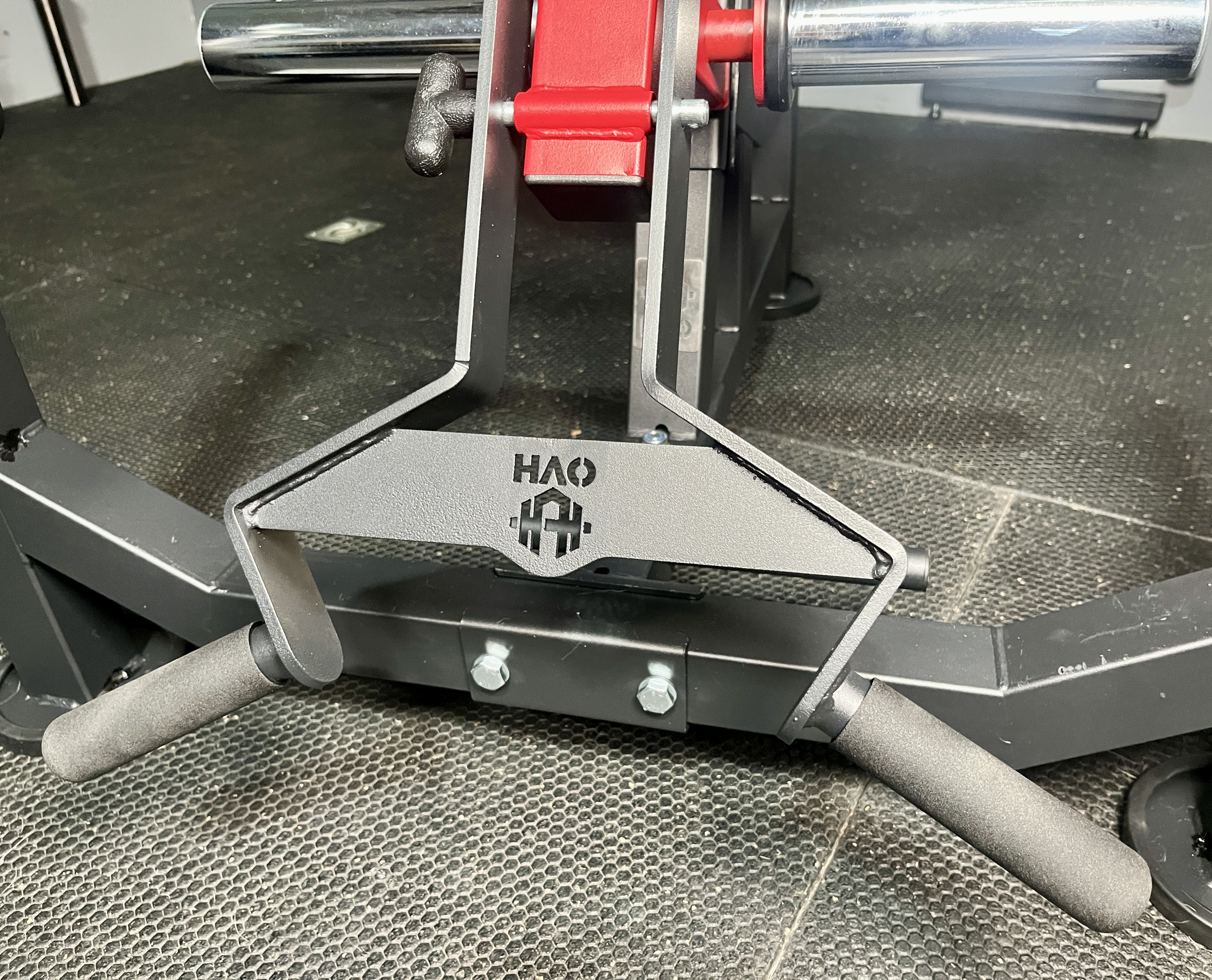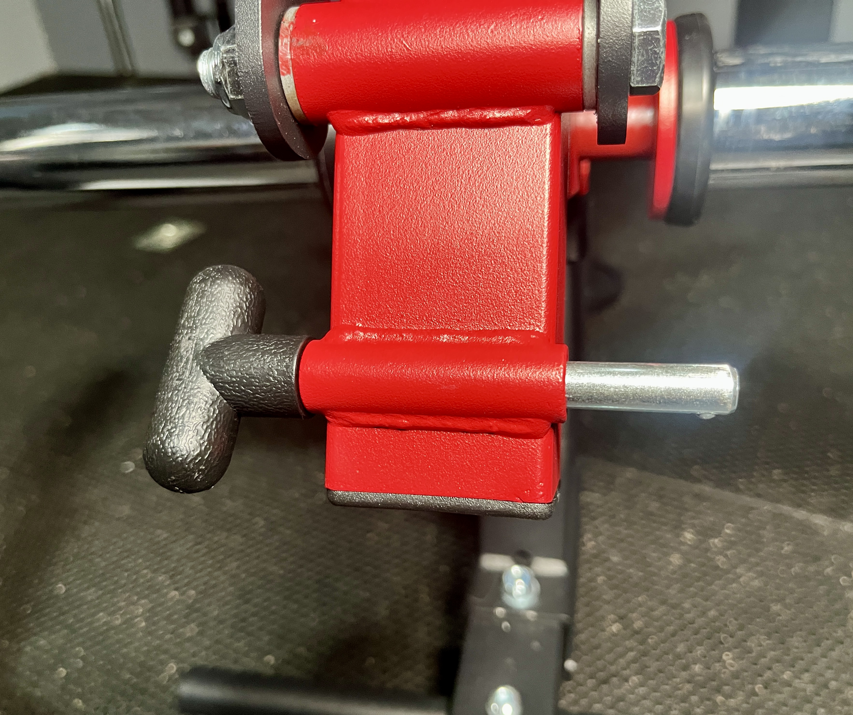 I can flip down the handle and lock it in place to create a longer lever arm for Romanian deadlifts.
