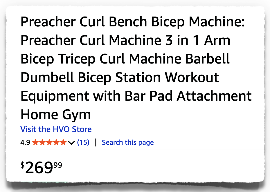 Not a huge deal since these benches are primarily designed for biceps but this one priced $72 higher than HVO’s.