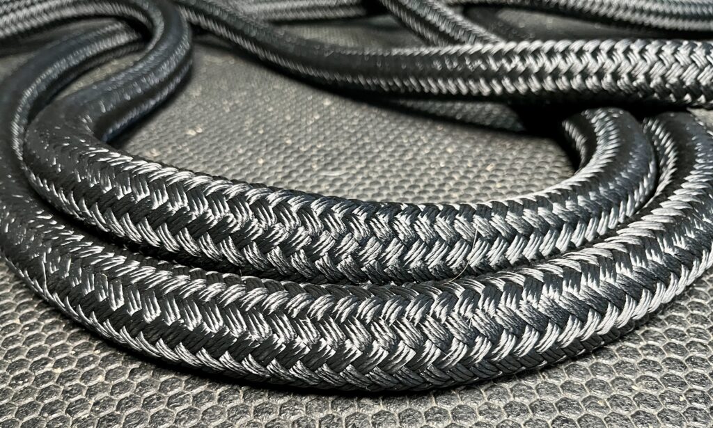 It’s made of a flexible metal core, surrounded by braided polyester that’s more durable than the Dacron material used by traditional battle ropes.