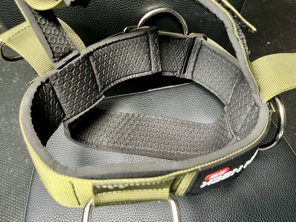 The entire interior of the harness is lined with neoprene so that the fabric doesn’t rub against my skin.