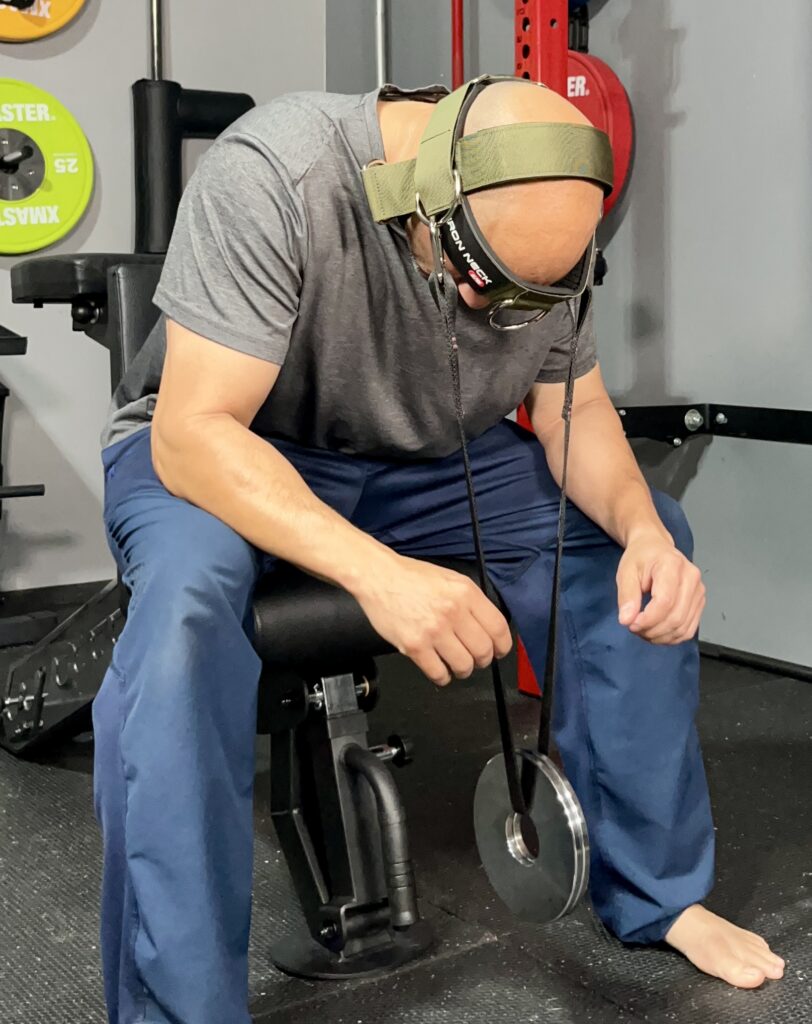 Whether it’s a seated neck extension or prone neck extension, weight plates feel the best for me.