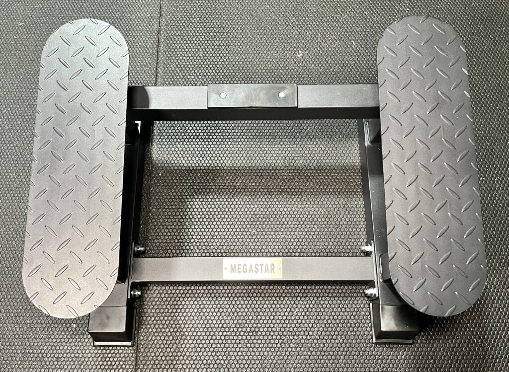 The Megastar T-bar row platform is a weightlifting platform that puts you in a position where you can get a full stretch at the bottom of a landmine row.