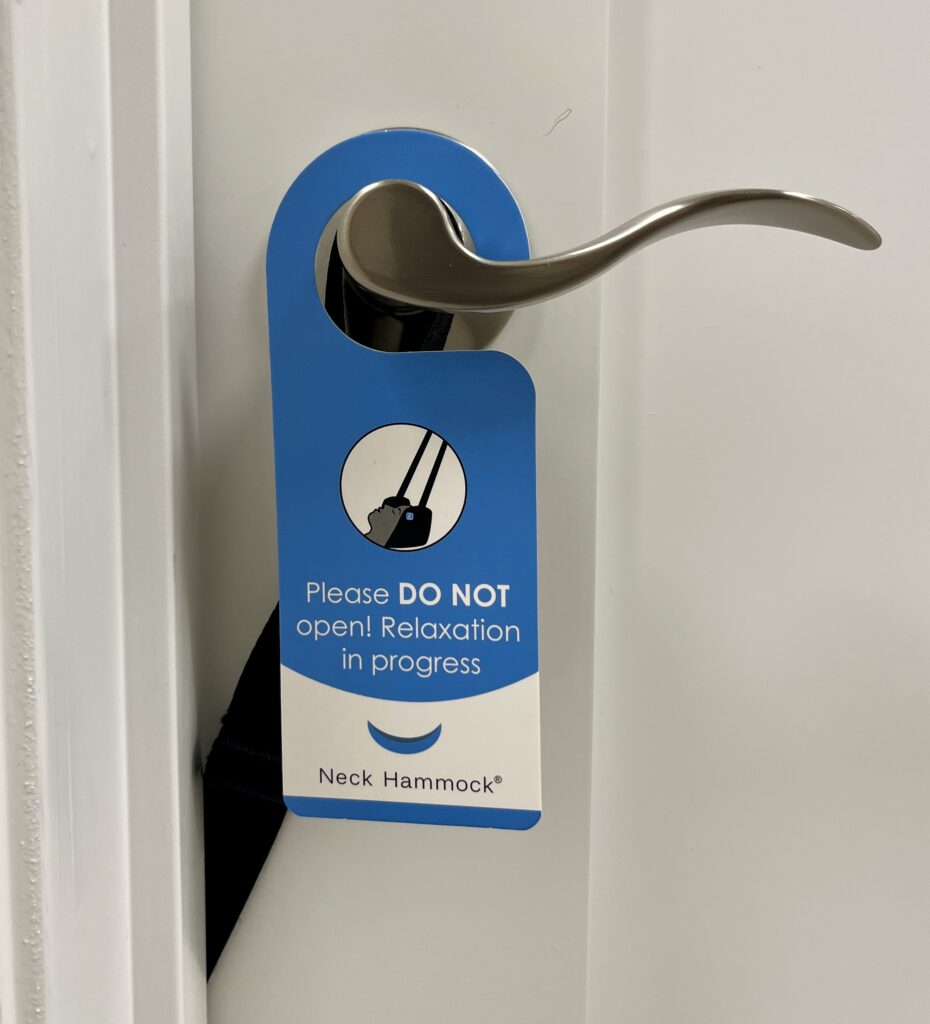 Now that I’m inside the door, I wanna make sure the Neck Hammock hangs around 2″ to 4″ off the ground.