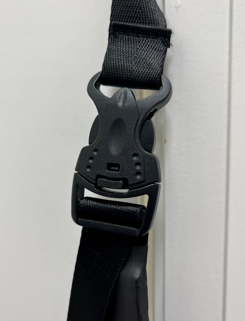 And if I wanna anchor the Neck Hammock to something other than a door, the strap has a buckle so I can release it from the rest of the hammock.