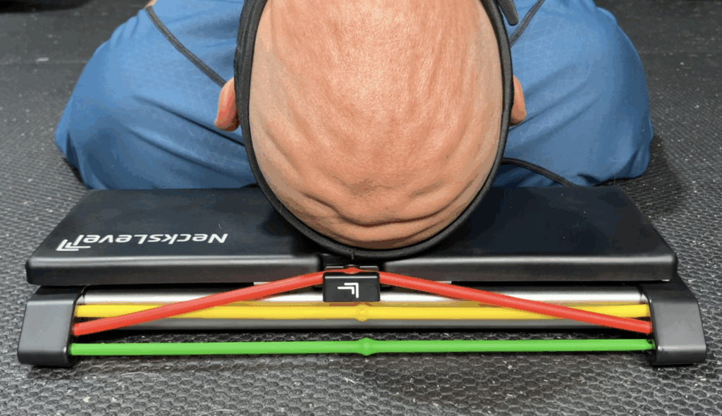 NecksLevel is a neck strengthening device that uses resistance bands and a gliding mechanism for isolation neck exercises in all ranges of motion.