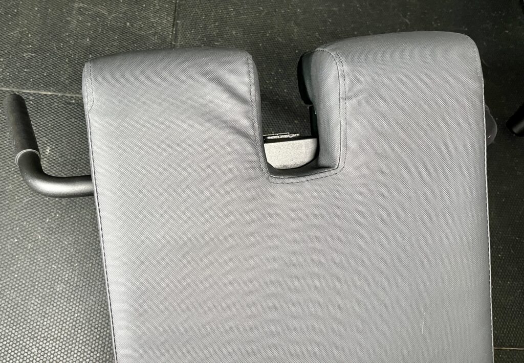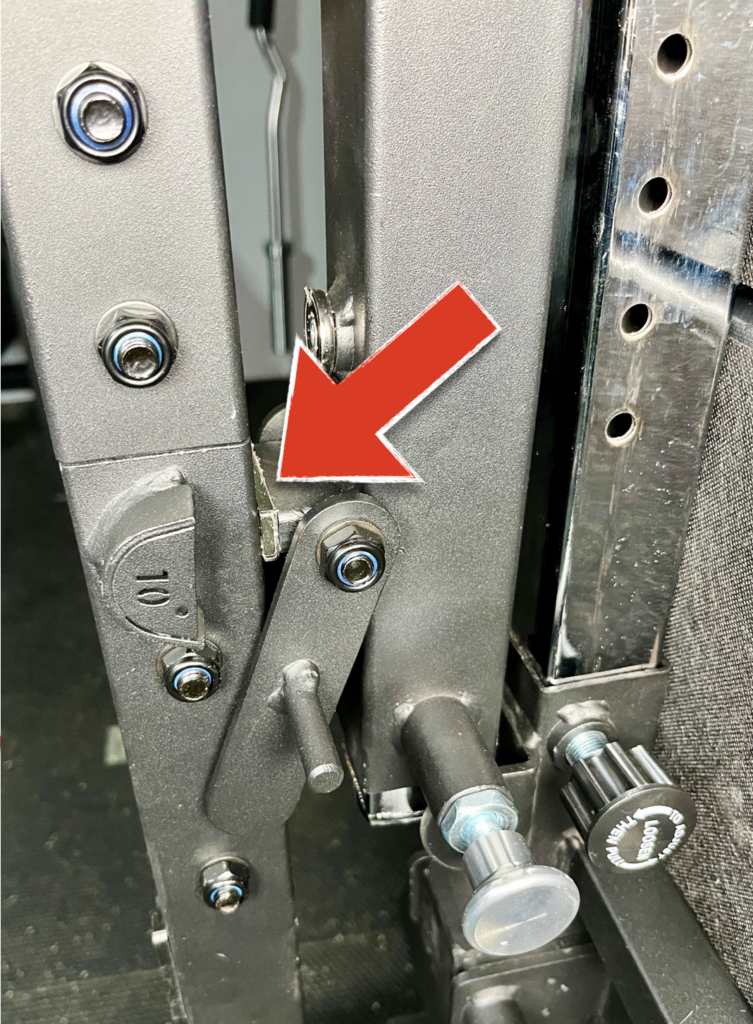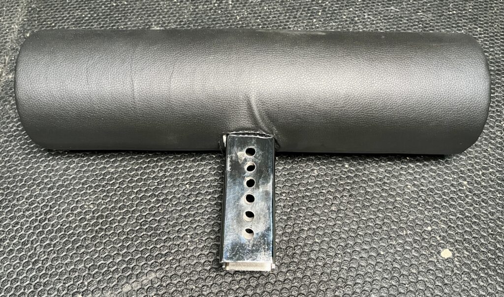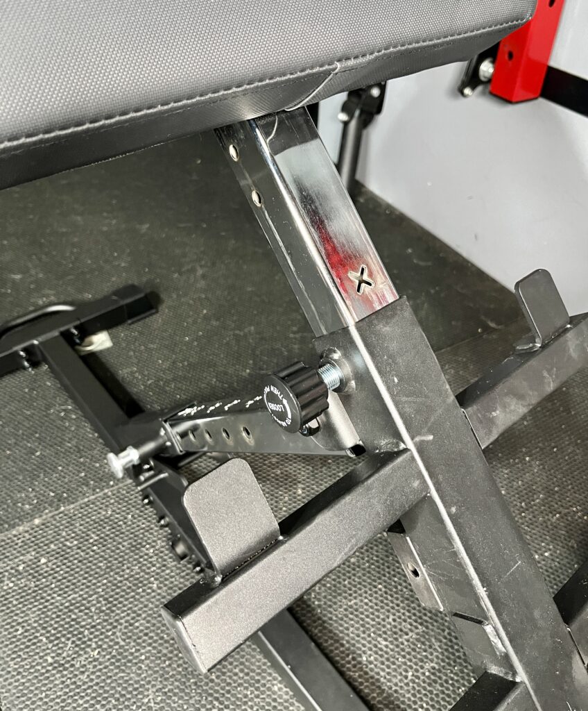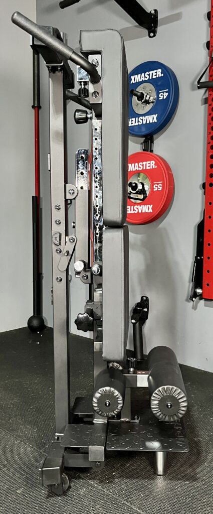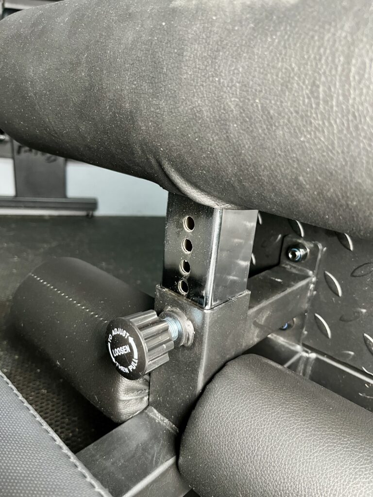 Here’s what the hip pad looks like after sliding it down and setting it up for back extensions.