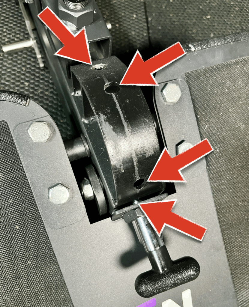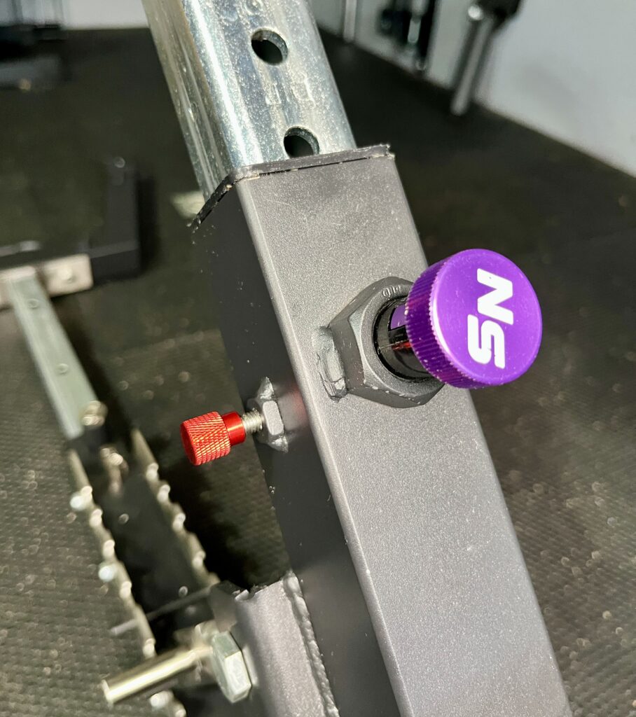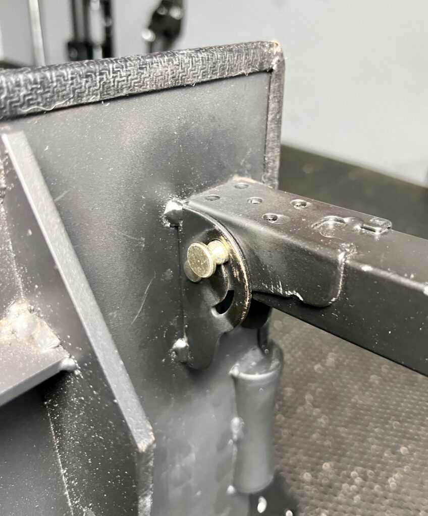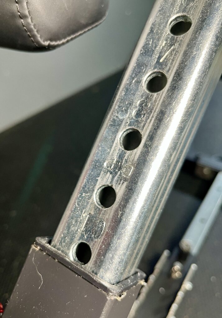 I like the position of this pin better than the original NordBench’s because it’s easier to match the telescoping arm’s hole from the top.