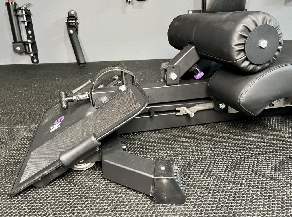 - Footplate: Adjustable so it can be used as a slant board and a platform (no other Nordic curl bench does this)