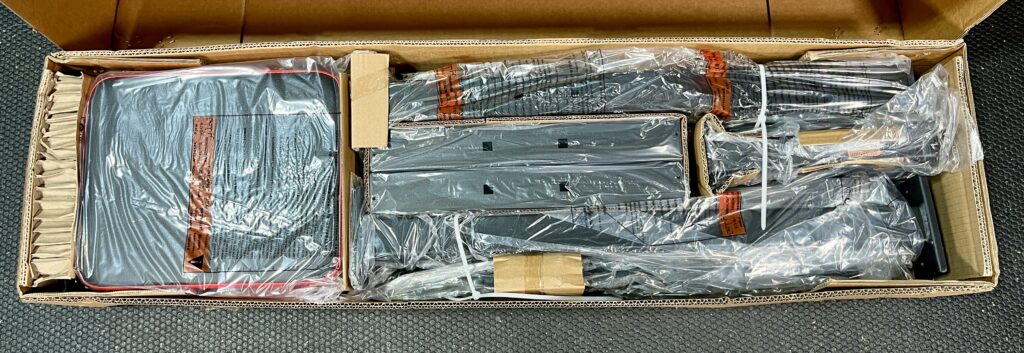 Each piece came plastic wrapped with cardboard spacers in between and around parts so they don’t shift around during shipping.