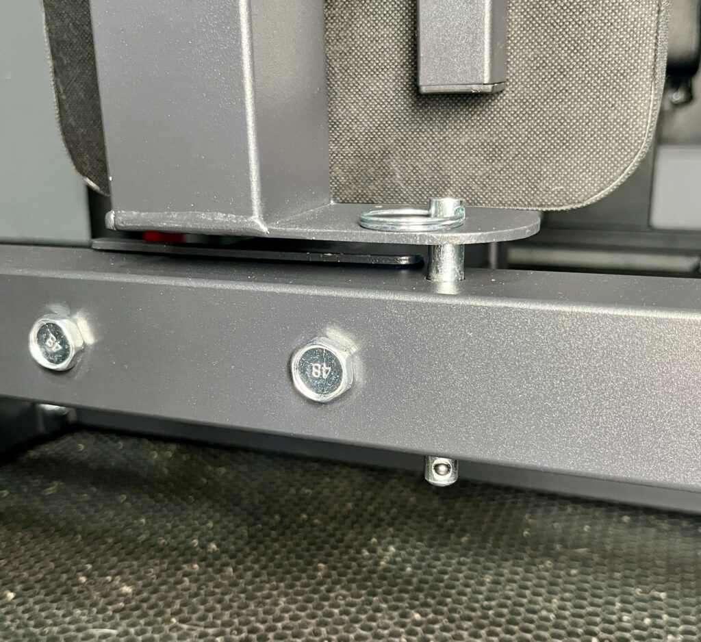 In the picture above you can see the bench frame has a side lip with a hole and that’s where the pin goes through.