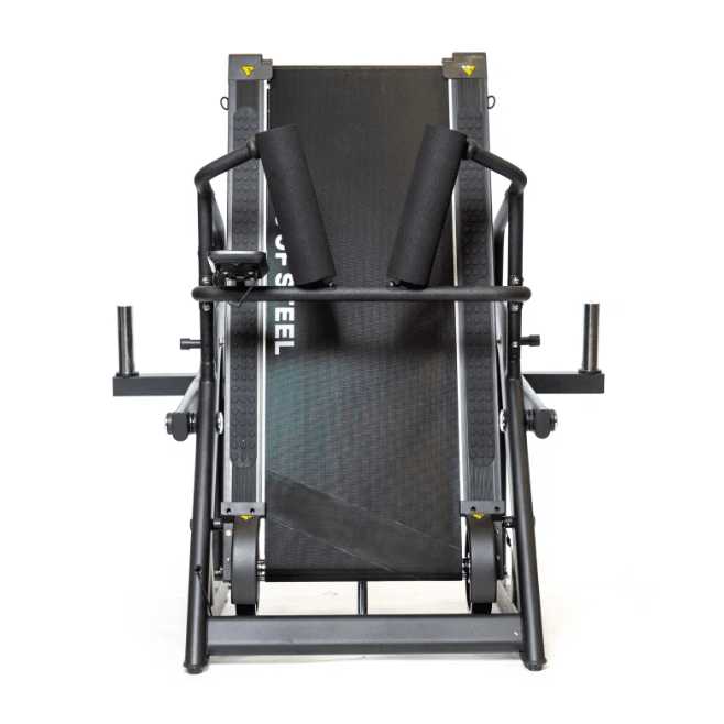 Simulate a sled push by placing your arms on the handrails or lean into the shoulder pads.
