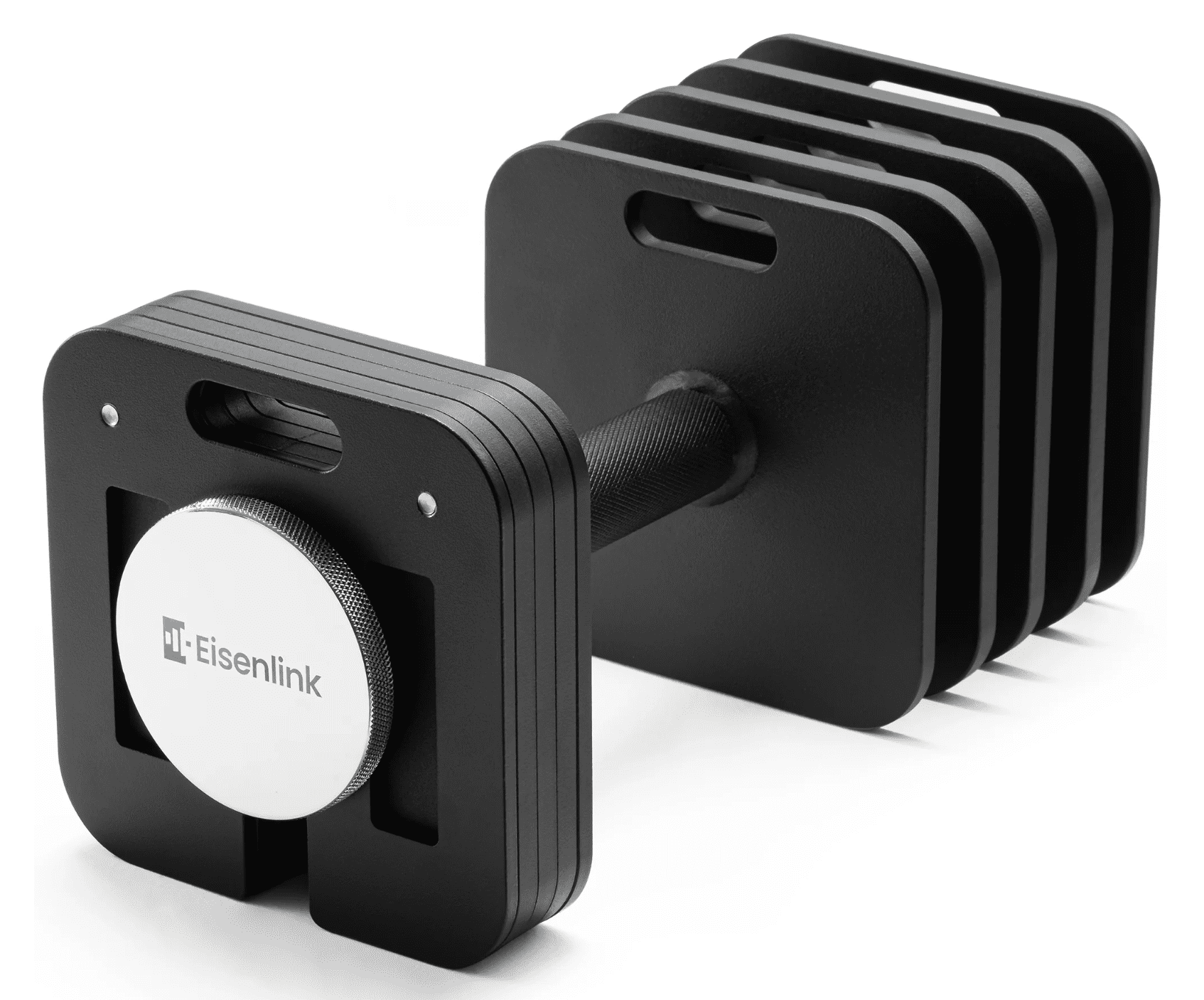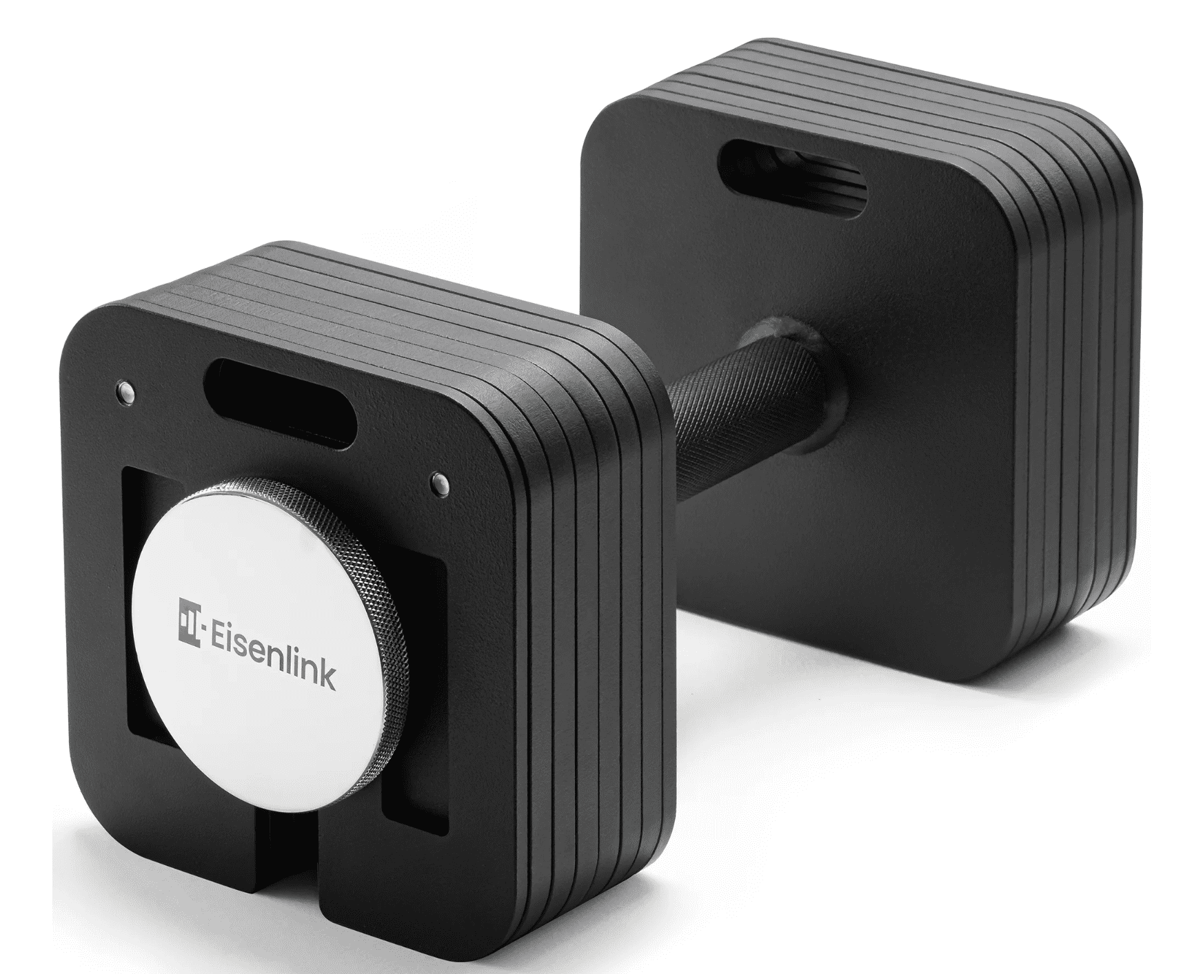 Eisenlink dumbbell plates are squared with an opening at the bottom which allows for quick adjustments.
