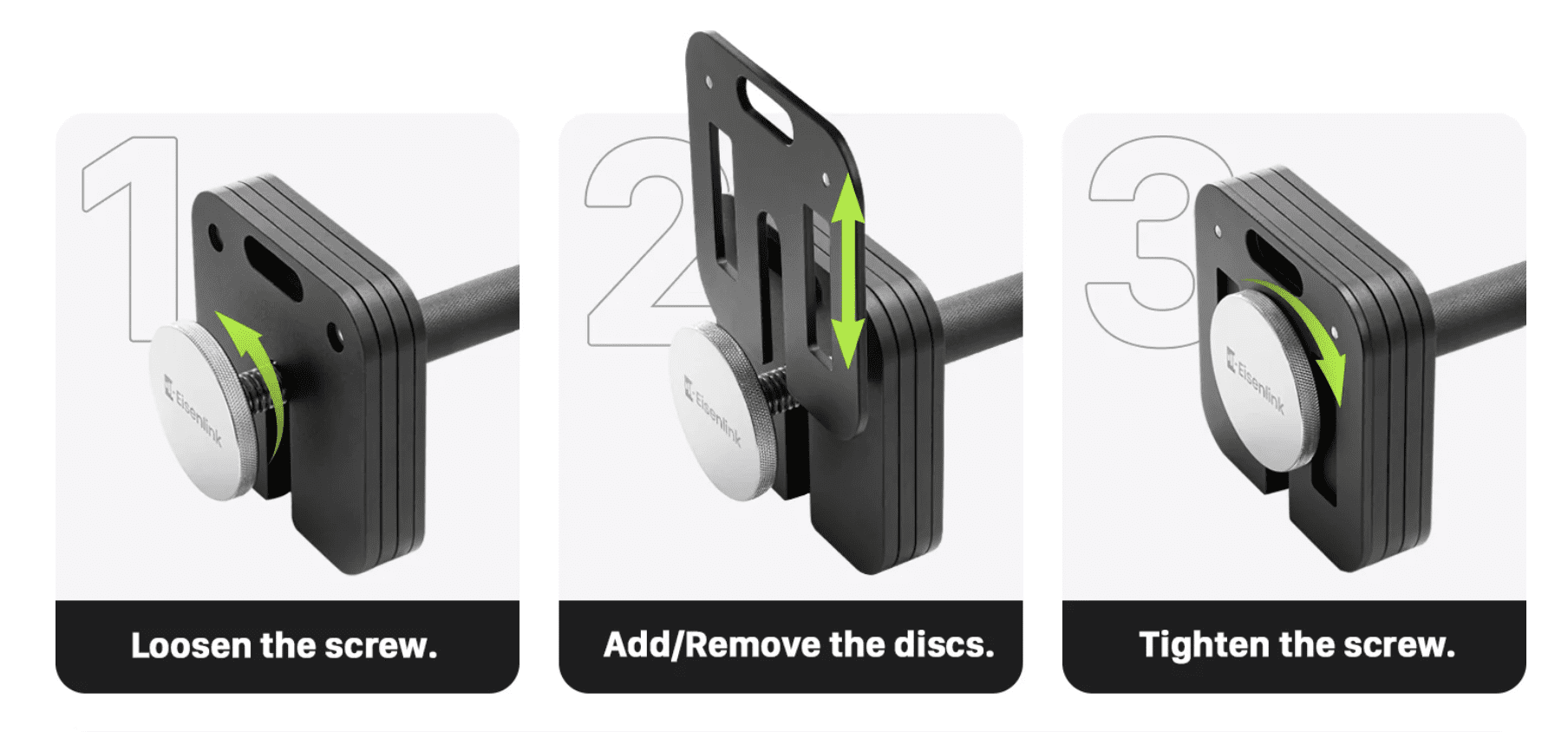 Eisenlink doesn’t require completely removal of the end cap to change weight, making them faster than Ironmaster.