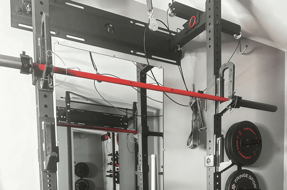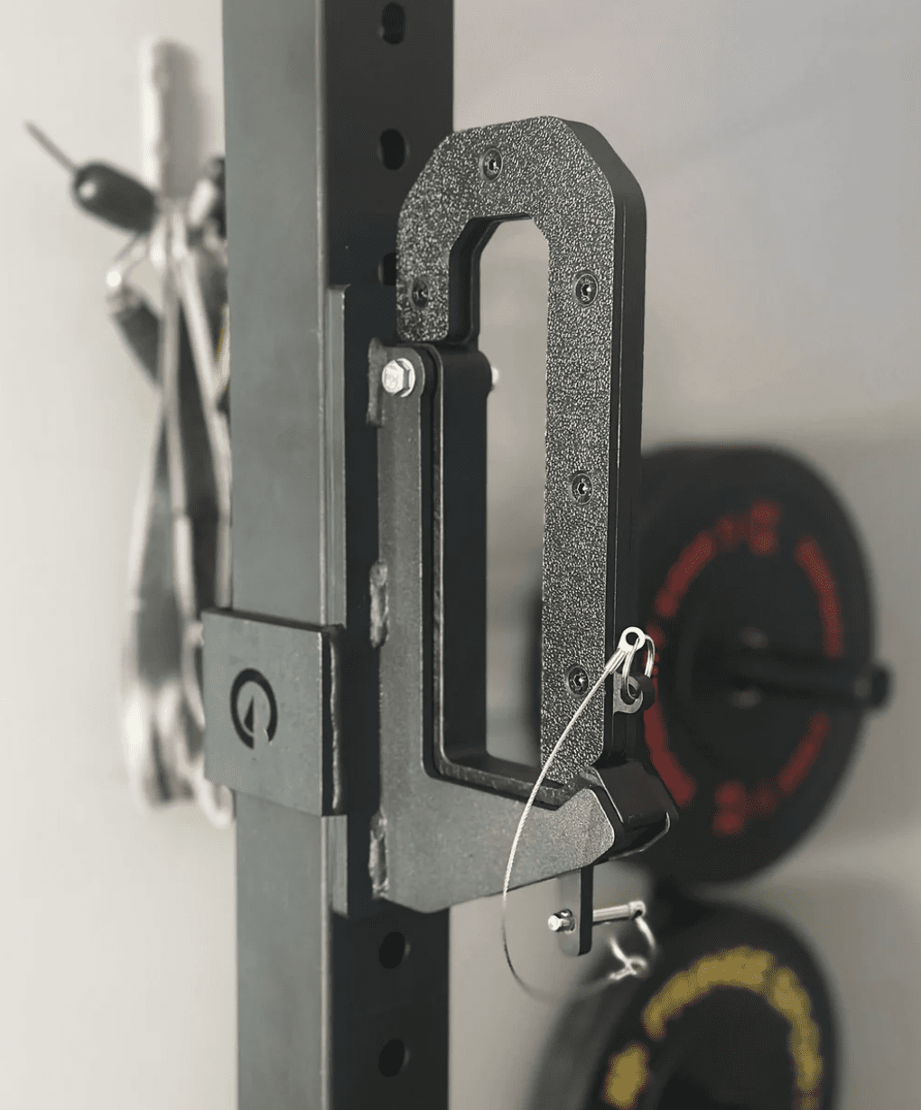 The Exponent Edge Calf Cups turn J-cups into an enclosed chamber that keeps a barbell secure when doing standing barbell calf raises.