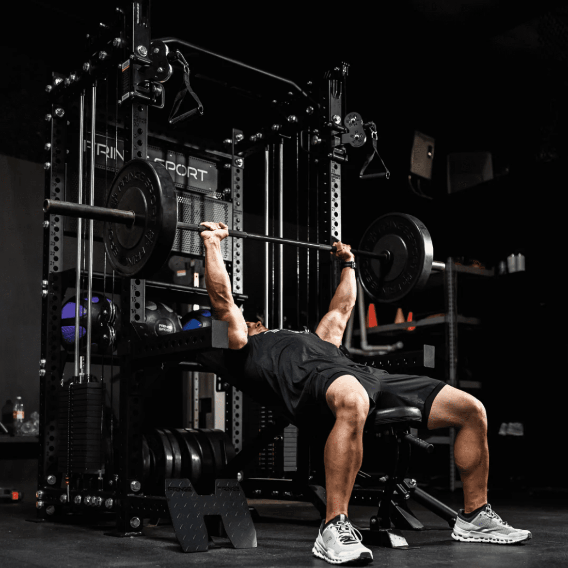 The Dane also doubles as a commercial grade squat rack in the front.