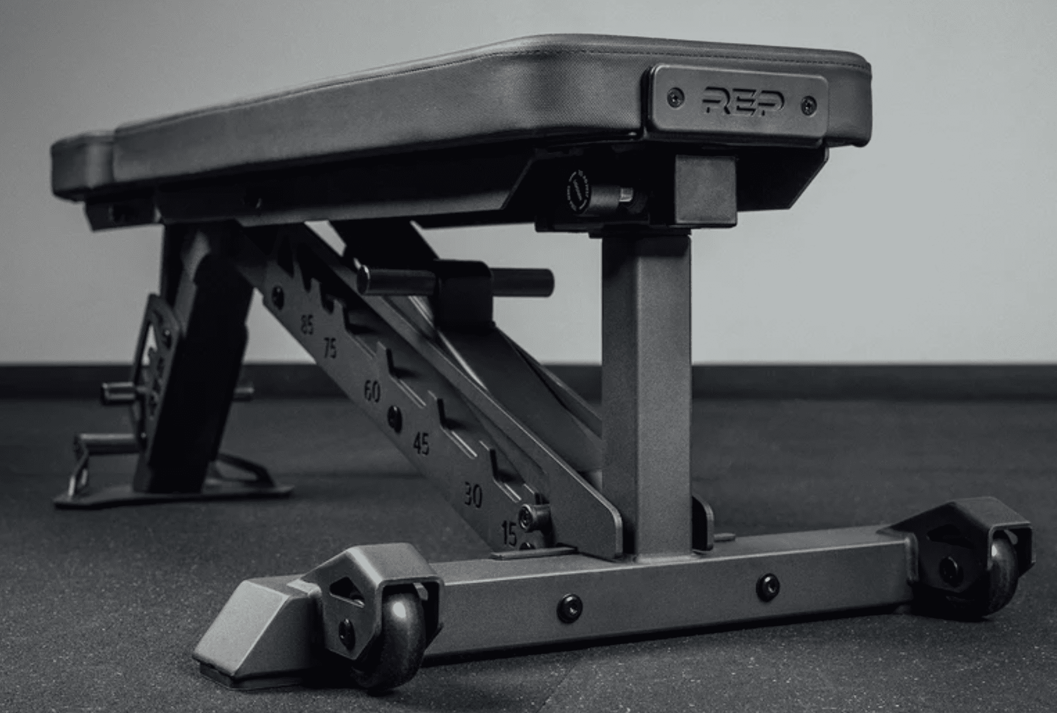 The Rep Nighthawk bench has a -15 seat angle adjustment to use for decline bench pressing.