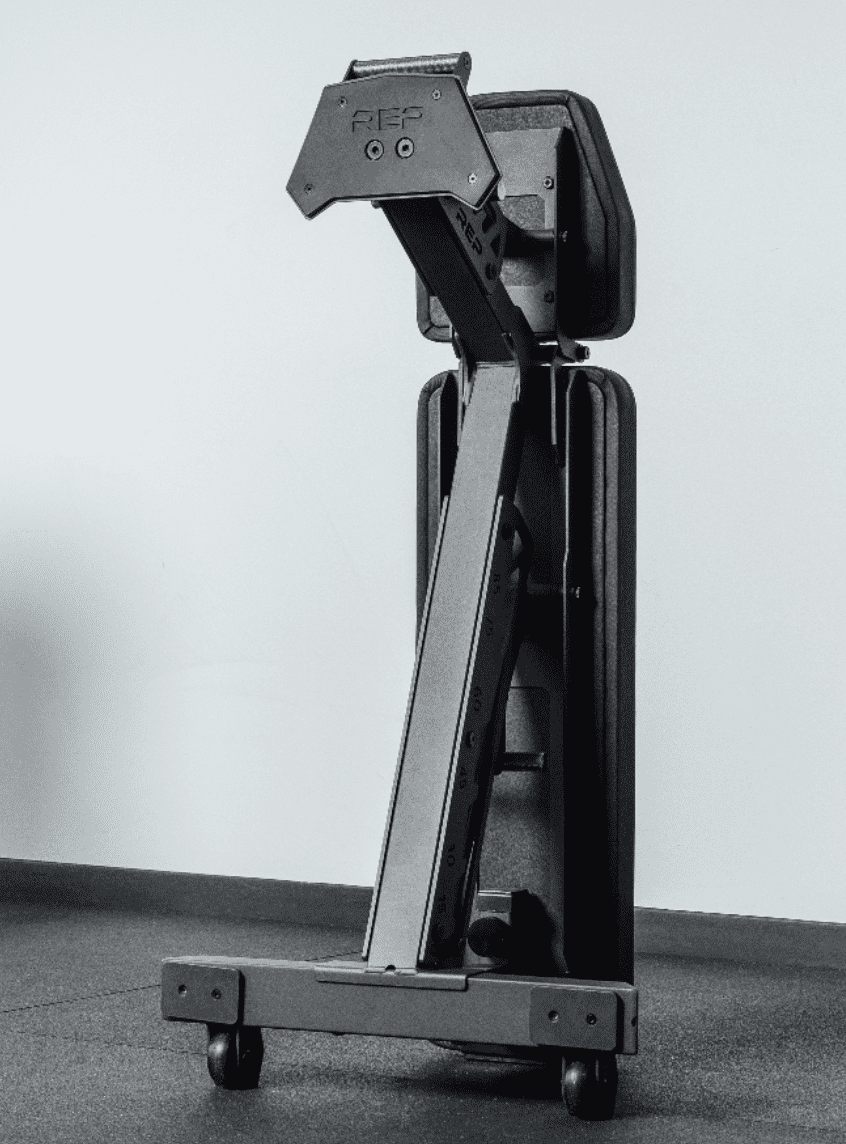 But it can also be flipped upside down (with the leg rollers up) for Nordic curls.