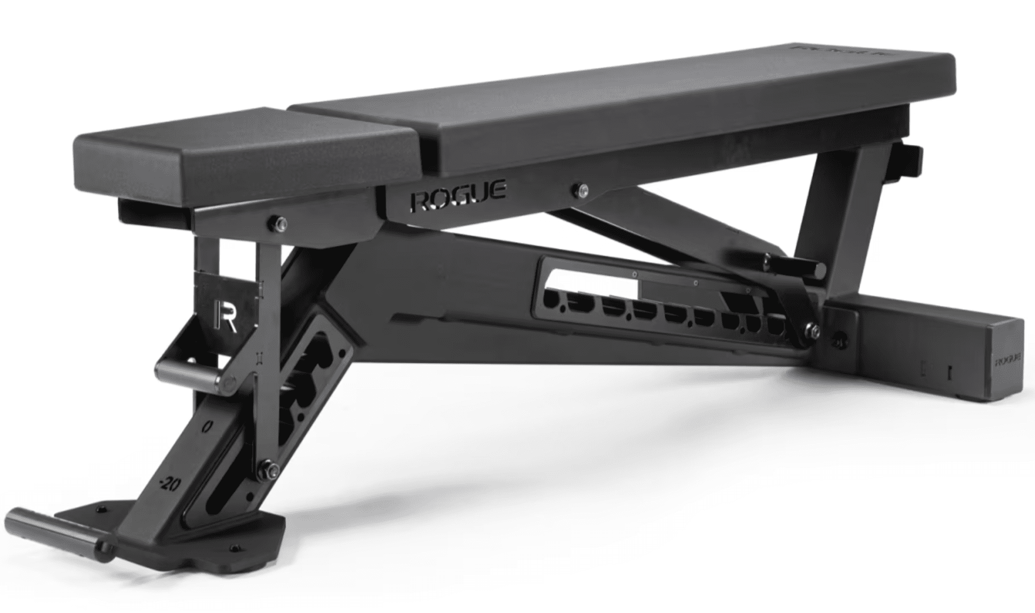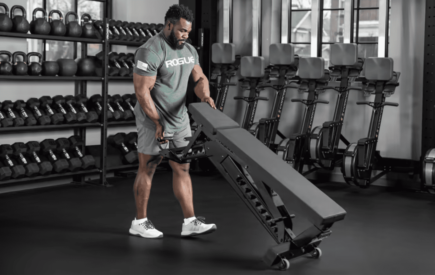 The Rogue Manta Ray adjustable bench introduces a new ladder-style, internal adjustment system that produces a clean aesthetic and even more incline/decline positions.