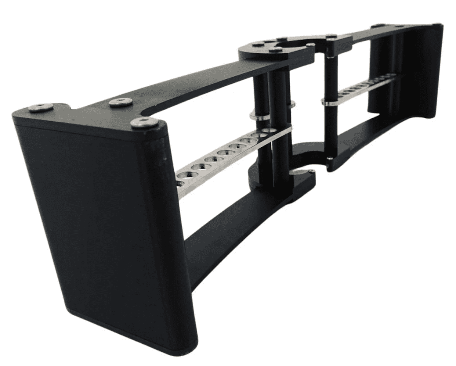 The bar has 10 carabiner holes on each side so you have the option to attach D-handles, Angles90 grips, or any other handles for a variety of grip widths.