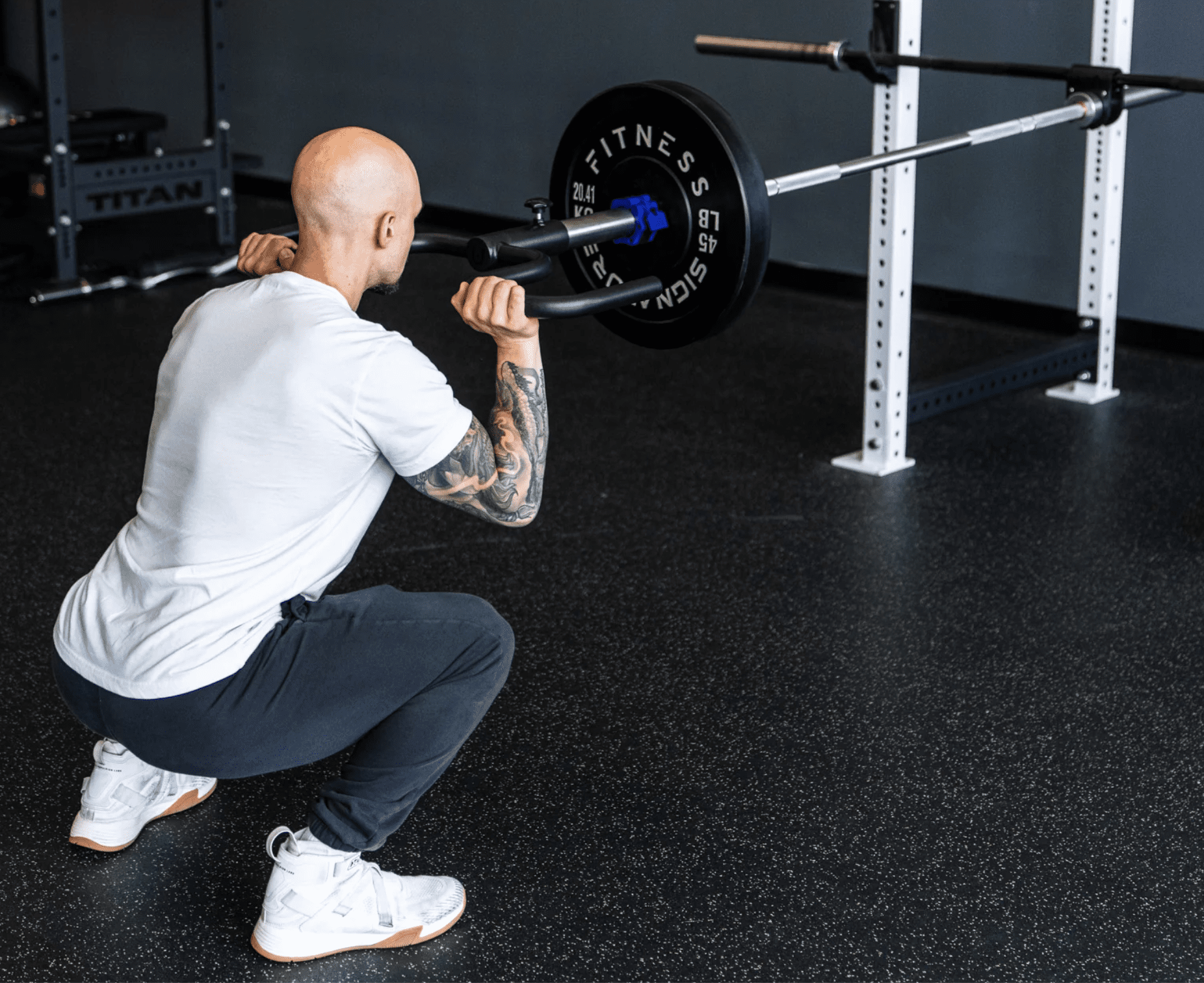 With the narrow neutral grip handles, I can mimic a landmine front squat.