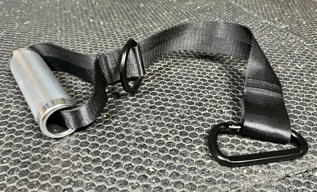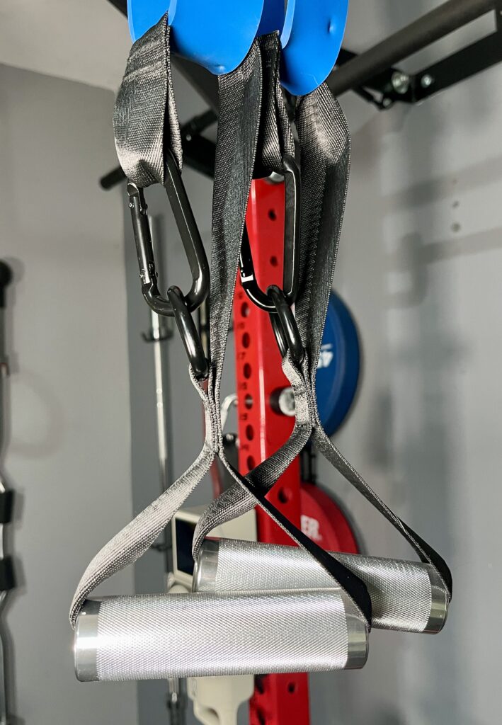 I use the long strap set up with my Voltra cable machine and for this I clip the carabiner directly on the cable.