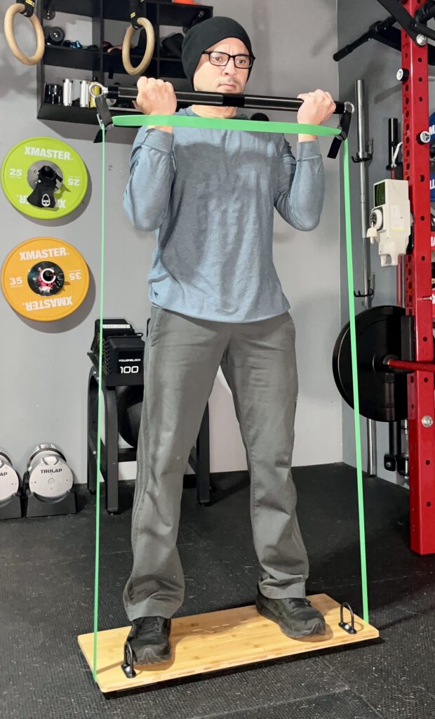 The problem with this set up though, is that it’s hard to get under the bar because there’s lot of tension on the bands.