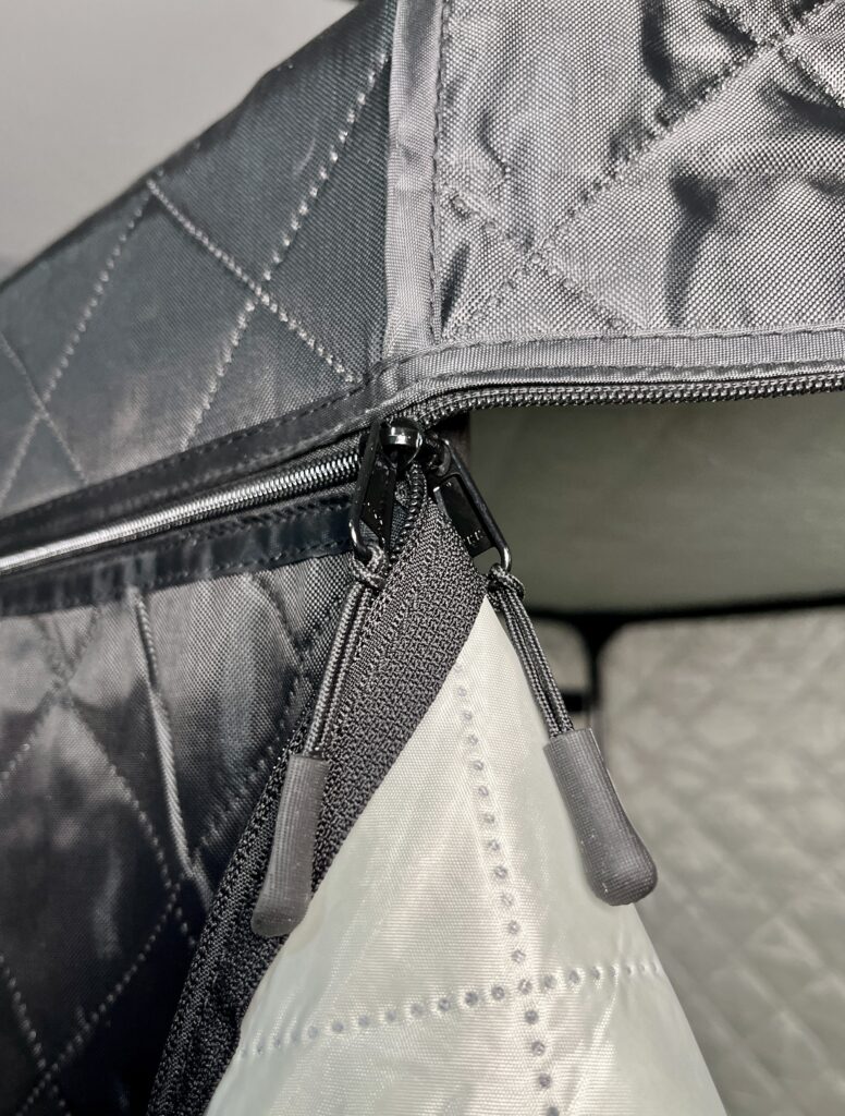 The double sided zippers make a lot of sense so I can open the door easily from the inside.