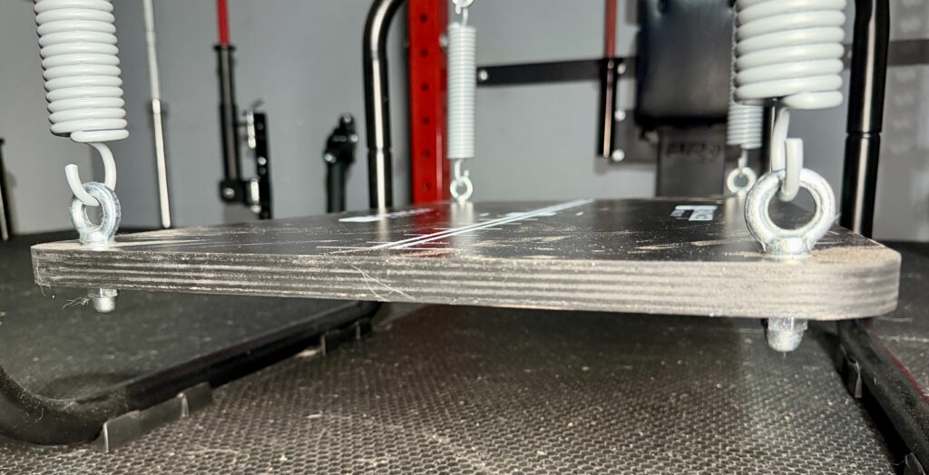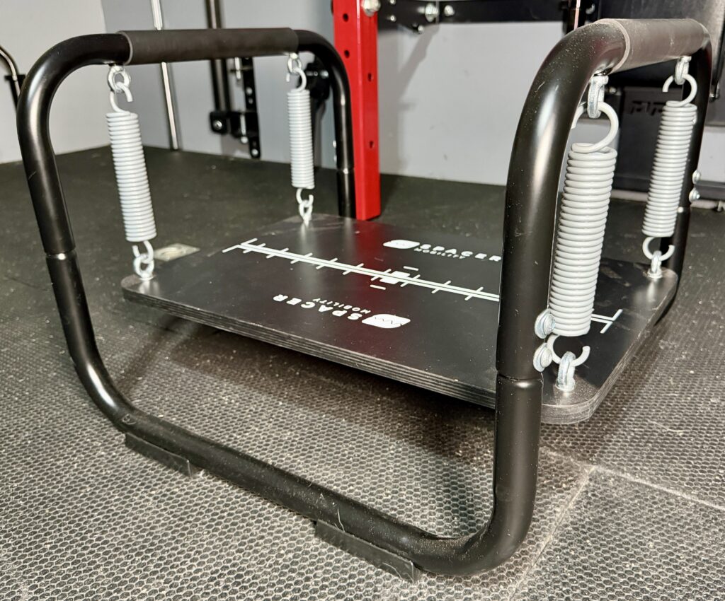 The Spacer Mobility Stability Trainer Pro is a spring loaded training platform that helps to improve my balance, stability, proprioception, and joint control.