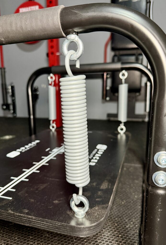 The stability trainer comes with 2 sets of 4 heavy duty springs that are color coded.