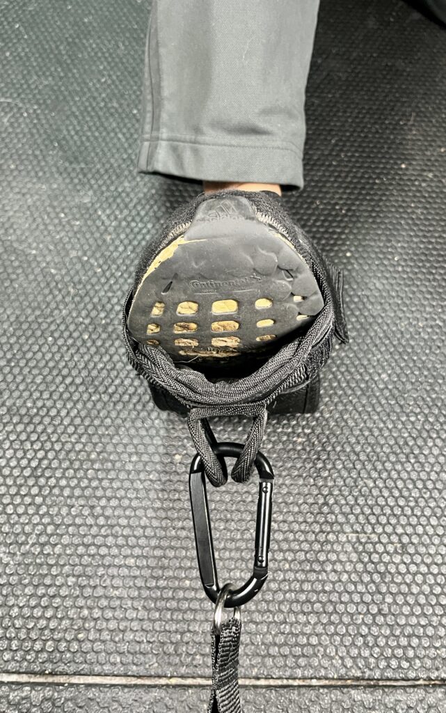 I clipped the bands to both grommets below my toes and do my tib raises to strengthen my Tibialis Anterior.