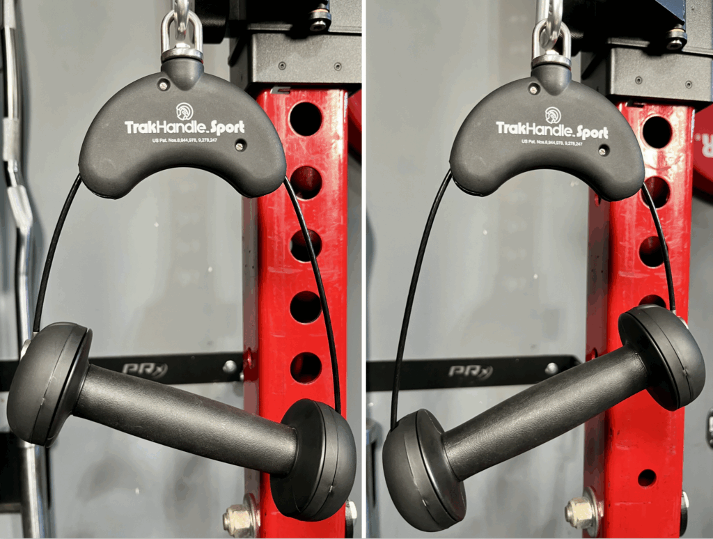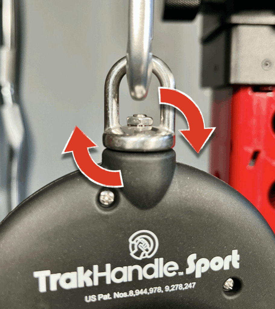 Trakhandle Sport is a cable attachment that uses a 3-dimensional axis so that the handle can move in any direction.