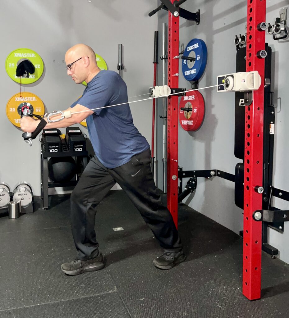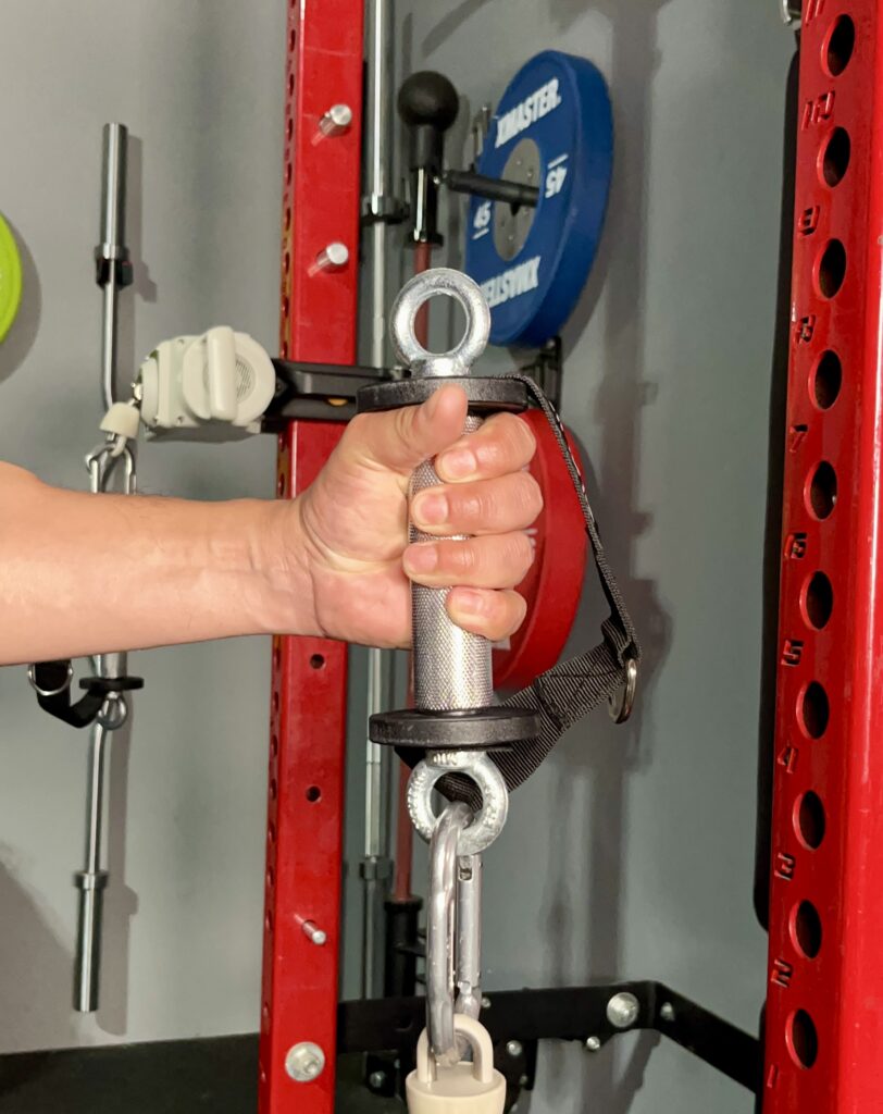 This reduces the strain on my hands and wrists because the handle moves with me without having to fight the cable machine’s resistance.